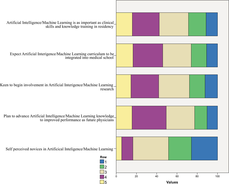 Most of the participants (77.4%, n=697) believed that artificial intelligence would play an important role in health care, with only a minority who did not agree or were neutral.