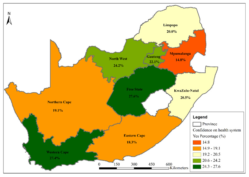 The perception that the health system would manage COVID-19 was highest in the Free State (27.6%) and Western Cape (27.4%) and lowest in Mpumalanga (14.8%).
