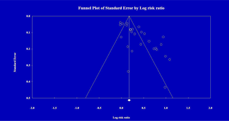 There was significant publication bias as evidenced by funnel plot asymmetry or the Egger test (P = 0.32). Therefore, it indicates that the studies with a small sample size had a low chance of publication (Fig. 2).