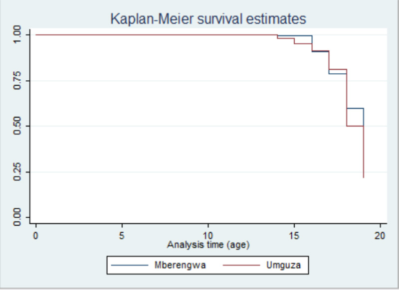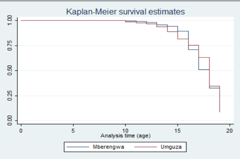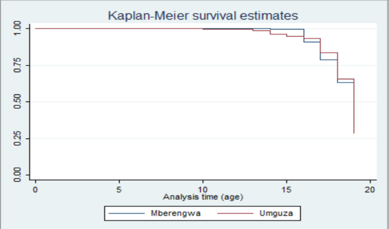The collected data were captured on an excel spreadsheet and imported into STATA Version 13 Standard Edition for analysis. Firstly, a correlation test was performed on all variables of interest to ascertain whether there was multicollinearity [27, 28]. If the correlation analysis results in an outcome greater than 0.8, multicollinearity exists [29]. Multicollinearity occurs when independent variables in a model are associated [30]. This association is problematic because independent variables should be independent [30]. If this association between variables is high enough, it can cause problems when you fit the model and interpret the results [30]. Furthermore, a Stepwise Logistic Regression (SLR) analysis was conducted to ascertain the validity of the predictor variables that were subsequently used to build the Multiple Logistic Regression (MLR) models. This was done using Bivariate analysis to determine which variables were to be used to construct the MLR model, where different variables of interest were cross-tabulated with the outcome variables “Prevalence of STIs and Pregnancy/impregnating.” All variables with a p-value of 0.2 or less qualified for the forward selection and were tested on the MLR for associations. It is standard practice to forward selected variables with a p-value of 0.2 or less to minimise the loss of variables in the early stages of model building [31, 32]. This method is often used to provide an initial screening of the candidate variables when many variables are involved [32, 33]. Finally, all variables with a p-value of 0.05 or less were presented in the final MLR model. The MLR model was used to determine the relationship between different variables and how they influenced STI prevalence and teenage pregnancies/impregnating (as these were used as the outcome variables for this model). Furthermore, Chi-squared tests (χ2), Cox Regression-Breslow method of ties, and Kaplan-Meier Survival Estimates were used to compare STIs prevalence, pregnancy/impregnation, and engagement in sexual intercourse by adolescents in the two districts. These specialized tests enable one to compare patterns between two populations and make inferences on the differences and similarities.