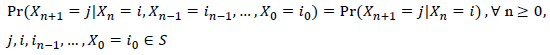 From Eq. (1), the distribution of the next state (of Xn+1) depends only on the current state (Xn) and not on previous states occupied, Xn-1,Xn-2,...,X1.