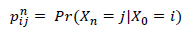 Furthermore, the probability of going from state i to state j in n steps is given by Eq. (3) as: