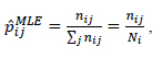 Where Ni is the number of observed transitions that starts from state i to j and,