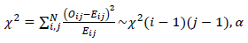 At α = 0.05 significance level and degrees of freedom, the X2 critical value and the X2 test values are determined.