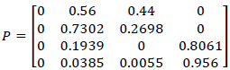 pij 0, i, j = 1,2,3,4 and ∑ pij = 1 i, j = 1,2,3,4