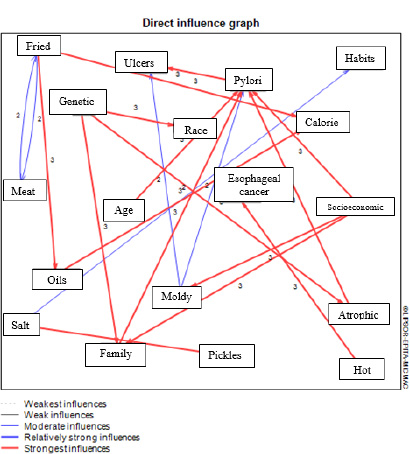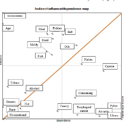 Fig. (1) shows the distribution map of gastric cancer risk factors in the impact-effectiveness diagram (regarding the direct effects of variables).