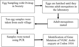 The primary data in this study is the result of the detection of Ae. Aegypti mosquito resistance. The resistance detection test was carried out at the Banjarnegara Research and Development Center using the Polymerase Chain Reaction (PCR) method. The PCR method is one of the methods used to multiply DNA. PCR is important as a diagnostic tool to detect and determine virus serotypes. With this method, the mutation of the gene of VGSC Aedes aegypti at codon 1016 can be known. The data were then analyzed descriptively to describe the research results. The gene fragment was amplified by PCR using a primer Ile1016r/ Val1016f/ Ile1016f/ Gly1016r/ Val1016f/ Gly1016f.