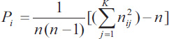 Where n= number of raters; j= range of scores (j=1,..,k); i=number of patients (i=1,..,N).