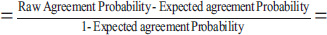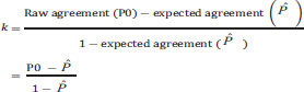 Now, one can define kappa statistics using the formulae presented in sections I and II as follows: (Eq 3).