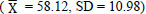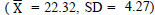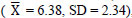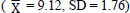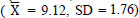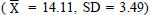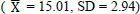 = 15.01, SD = 2.94), as detailed in Table 2.