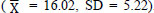 = 16.02, SD= 5.22). Additional details are shown in Table 1.