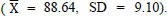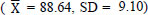 = 88.64, SD = 9.10). Considering their non-infectious disease prevention behavior, they had a fair level of exercise (