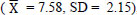 = 7.58, SD = 2.15), and a very good level of smoking (