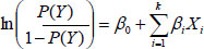 Where P(Y) is the probability of a certain level of the dependent variable, and βi is the coefficient of each independent variable Xi in the model.