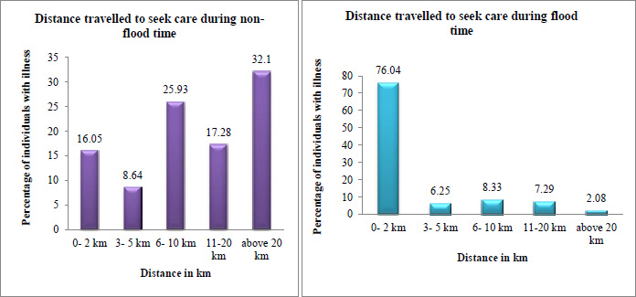 The author collected the data from the head of the household using face-to-face interviews. About 30 minutes were required to complete each of the household schedules. The schedule comprises of 6 parts socio-economic characteristics, housing and basic amenities, health facilities in the village, illness episodes, and place of treatment for each illness within 6 months from the survey in normal time, the illness occurred during flood and seeking care in the year 2019, and problems faced in seeking healthcare during the flood. The reported illness data were collected from the individuals but in case of the person below 18 years of age or not present during the survey, the household head answered the questions.