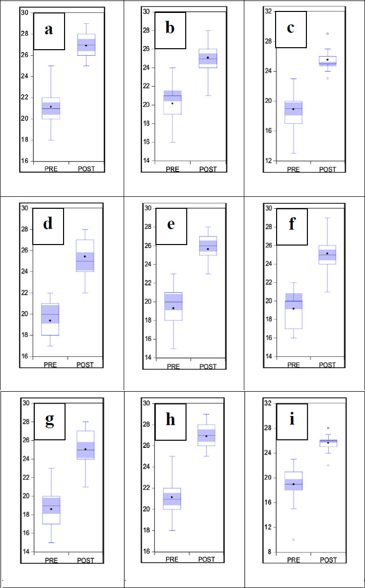 Table 4 clearly shows that the mean values of all variables increased significantly. These results exhibited that after developing the model to empower COVID-19 sufferers, there were improvements in all determinants, which is seen in the box-plotted data in Fig. (2).
