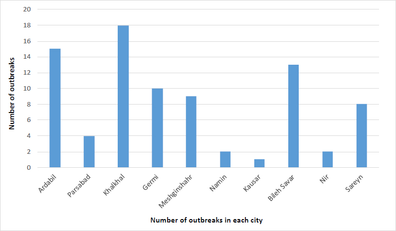 According to the data of the Health Department of Ardabil University of Medical Sciences, there were no reports of outbreaks between 2014 and 2018, which shows that the activities of the health department have been successful in preventing these outbreaks. However, 13, 34, and 94 outbreaks have been reported in 2020, 2021, and 2022, respectively.
