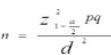 α = 0.05, d = 0.02, p = 0.057, n = 700, Z(1–α/2) = 1.96