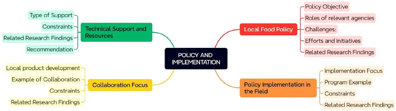 The local food policy in East Kalimantan has a strategic objective to support food security and community nutrition through increased production and consumption of local food, such as fish, livestock meat, and food crops, such as yam, taro, and sago. This policy is implemented through various programs by relevant agencies, namely the Food Service Office, Health Service Office, Livestock Service Office, and Marine and Fisheries Service Office, which include providing technical training, facility assistance, and capital support for the community. However, the implementation of this policy faces significant challenges, including budget constraints, infrastructure, and public perception that local food is less prestigious than commercial food [22]. In addition, geographical barriers and the difficulty of distribution to remote areas further complicate the implementation of the program in the field. These policy issues are illustrated in Fig. (3).
