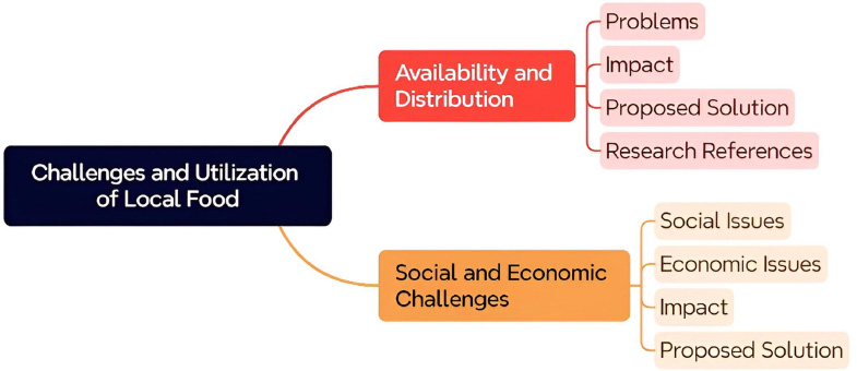 Local food utilization in East Kalimantan faces multidimensional challenges covering availability, distribution, and social and economic aspects. In terms of availability, local foods such as yam, taro, and local vegetables are more accessible to rural communities that produce their own food. However, limited availability in urban areas indicates a significant dependence on supplies from outside the region [30]. Distribution constraints further exacerbate this situation, mainly due to East Kalimantan's hard-to-reach geography and lack of adequate transportation infrastructure. The study by Thilmany D et al. confirms that geographical and infrastructural constraints are major barriers to food distribution in rural areas [31], which is also evident in the case of East Kalimantan. As a result, local foods are more expensive in remote areas, which has a direct impact on people's access to nutritious food such as meat and fishery products, especially for pregnant women. These constraints are summarized in Fig. (4).