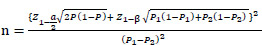 Z1-α/2 = Z value at confidence interval (two-tailed hypothesis test) = 1.96.