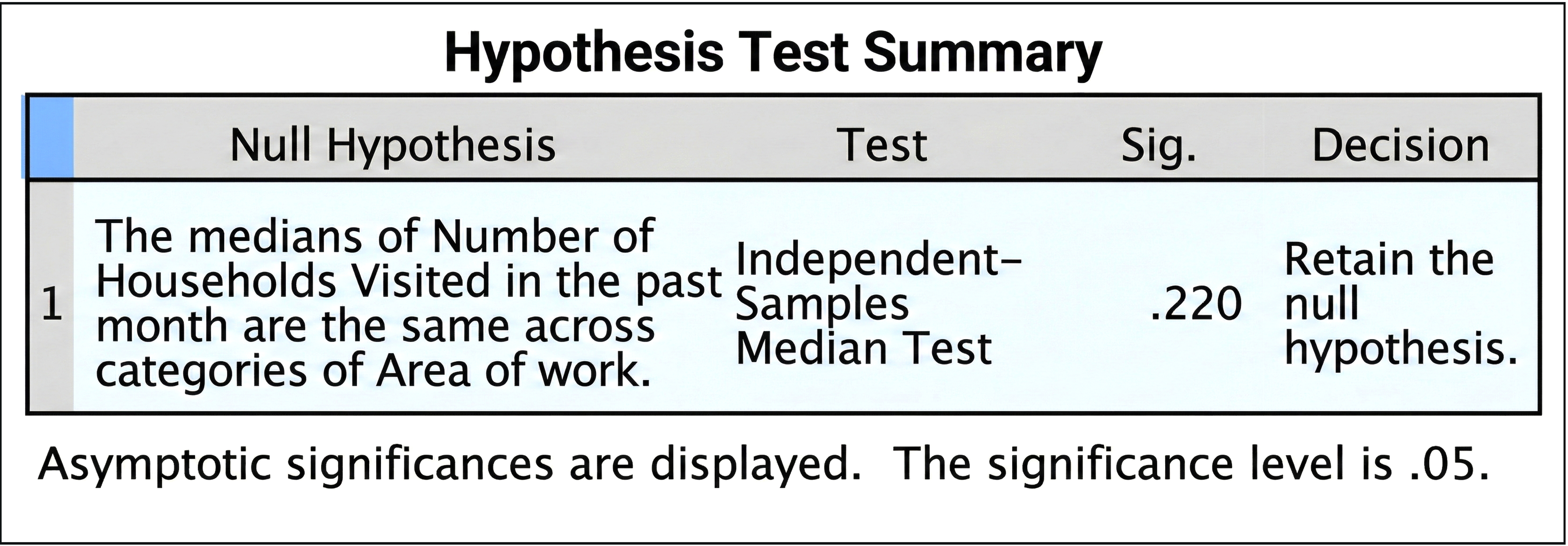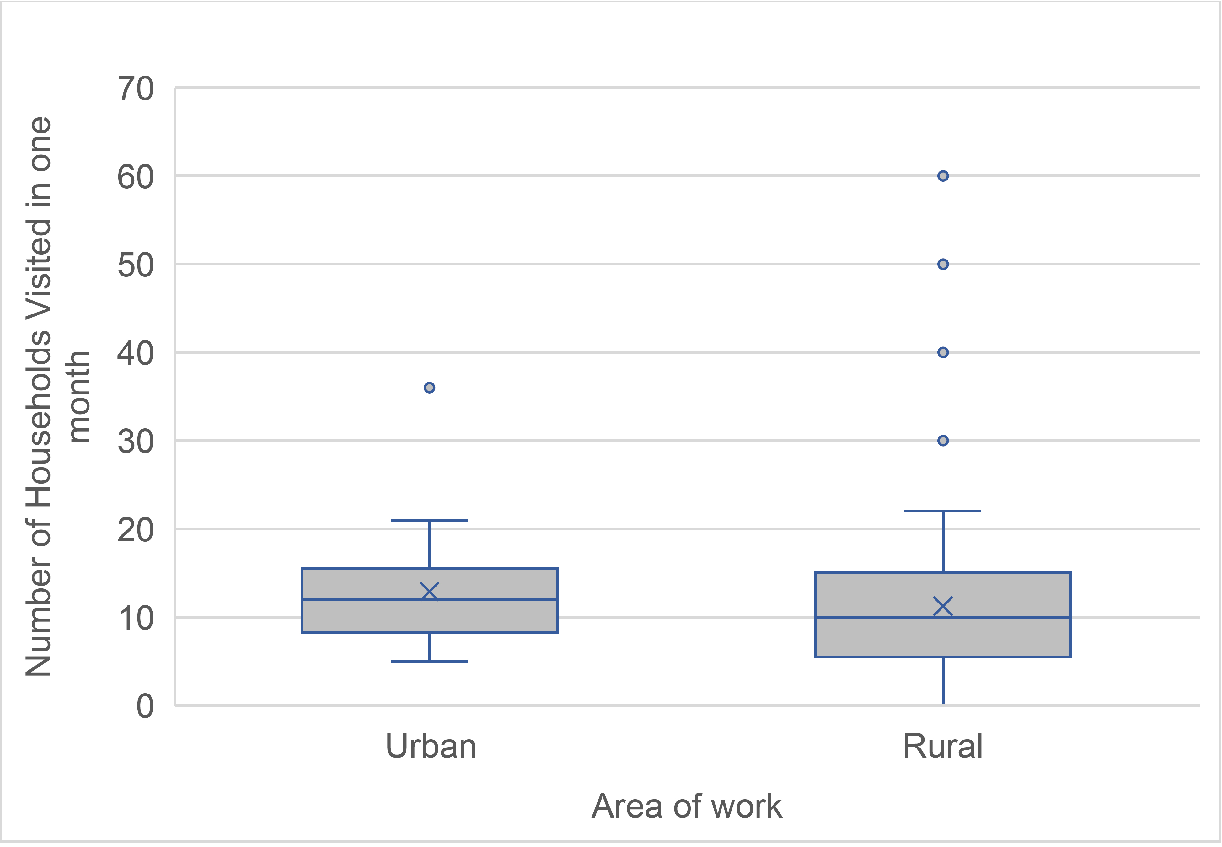 A nonparametric median test was conducted at the 95% confidence level to compare the median number of households visited by VHWs in urban and rural areas over one month. A p-value of 0.220 was obtained, indicating no significant difference (Fig. 3)